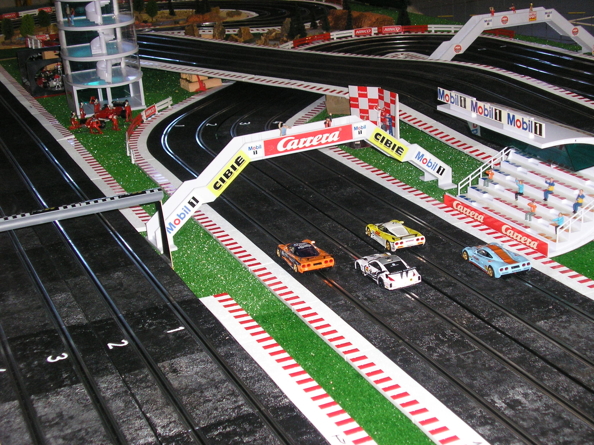 Proposta d’oci familiar . Es tracta d’un muntatge espectacular amb un circuit de Slot gegant, on podran jugar-hi els més petits de la casa i els de més d’edat per recordar vells temps… ja que la velocitat dels cotxes la podem controlar i modificar, és a dir, a més edat, més velocitat. Tanmateix també podem programar les curses per voltes o per temps, segons ens convingui a cada moment i segons l’afluència de participants.